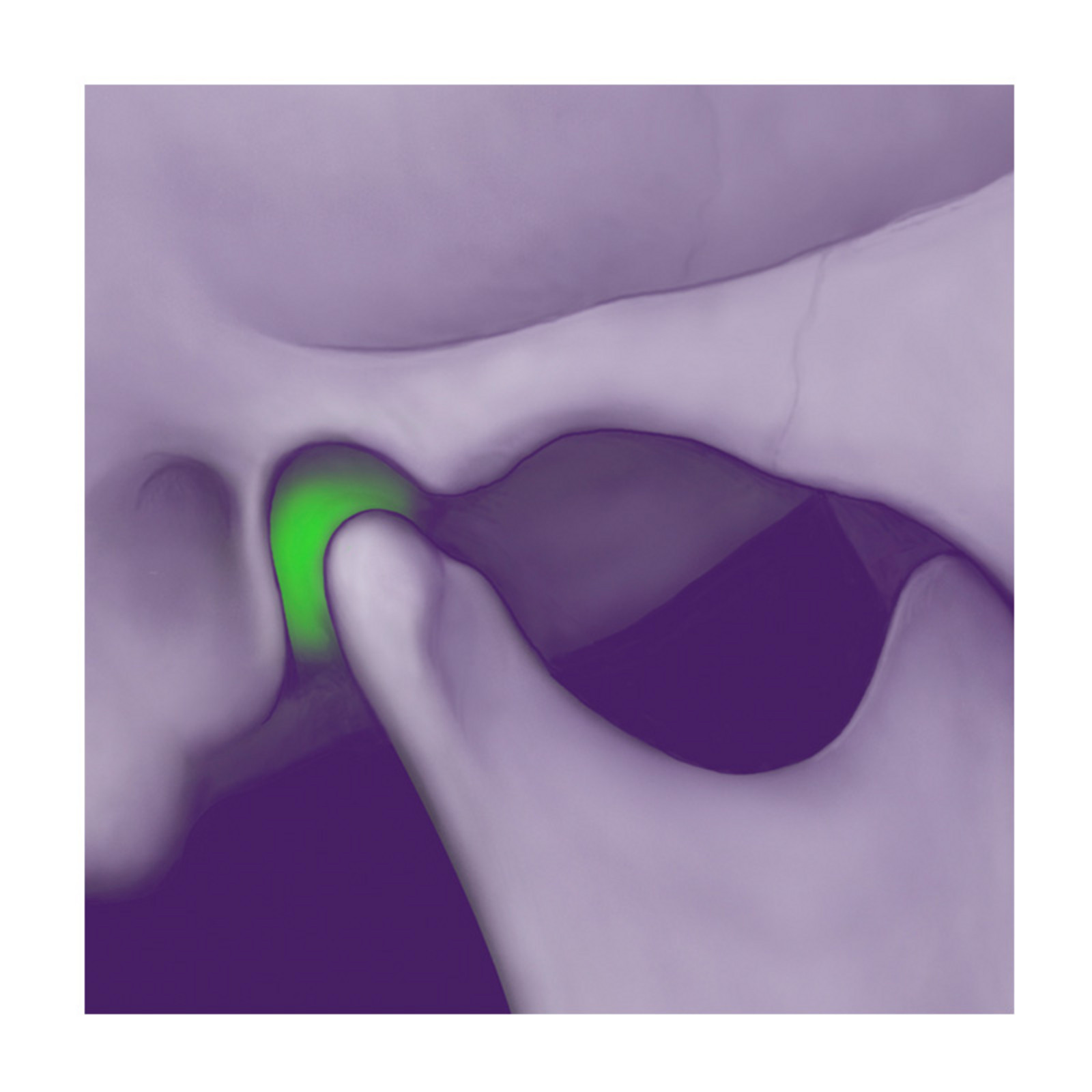 In diesem Fall ist die Zahnstellung optimal, dass Kiefergelenk aber nach hinten verlagert. Das führt zu CMD Problemen.